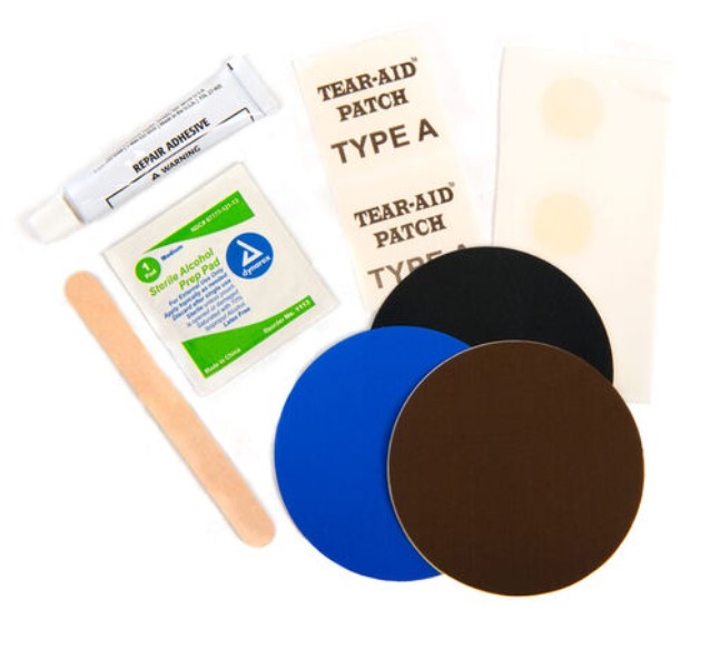 - What's Included: Vinyl Cement, Glue Dots, Patches, stick, Alcohol Wipes, Instructions