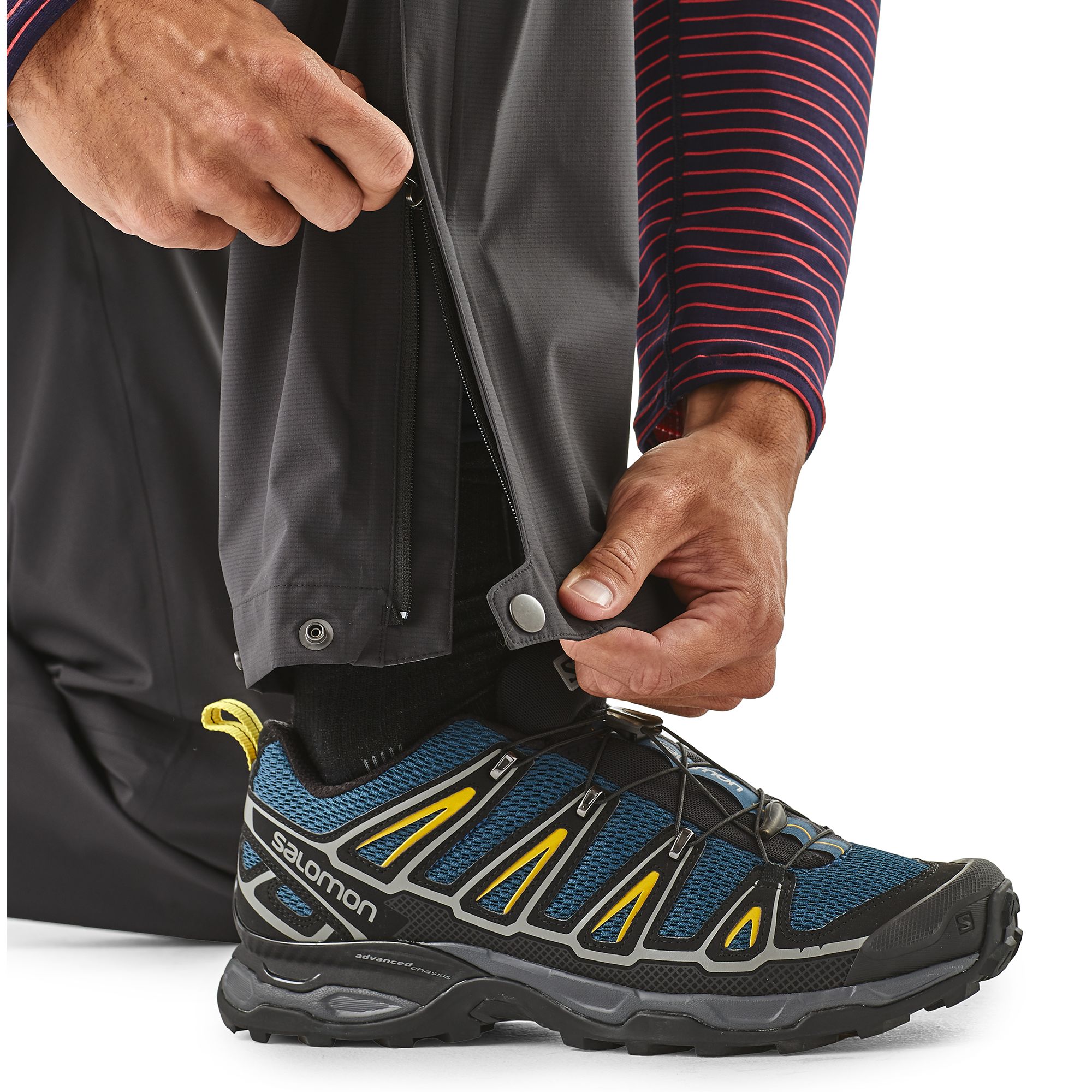 DWR-imprägnierte, bis zum Oberschenkel reichende 2-Weg Seiten-Reißverschlüsse mit Paspelleiste für bequemes Anziehen mit Stiefeln und gute Ventilation