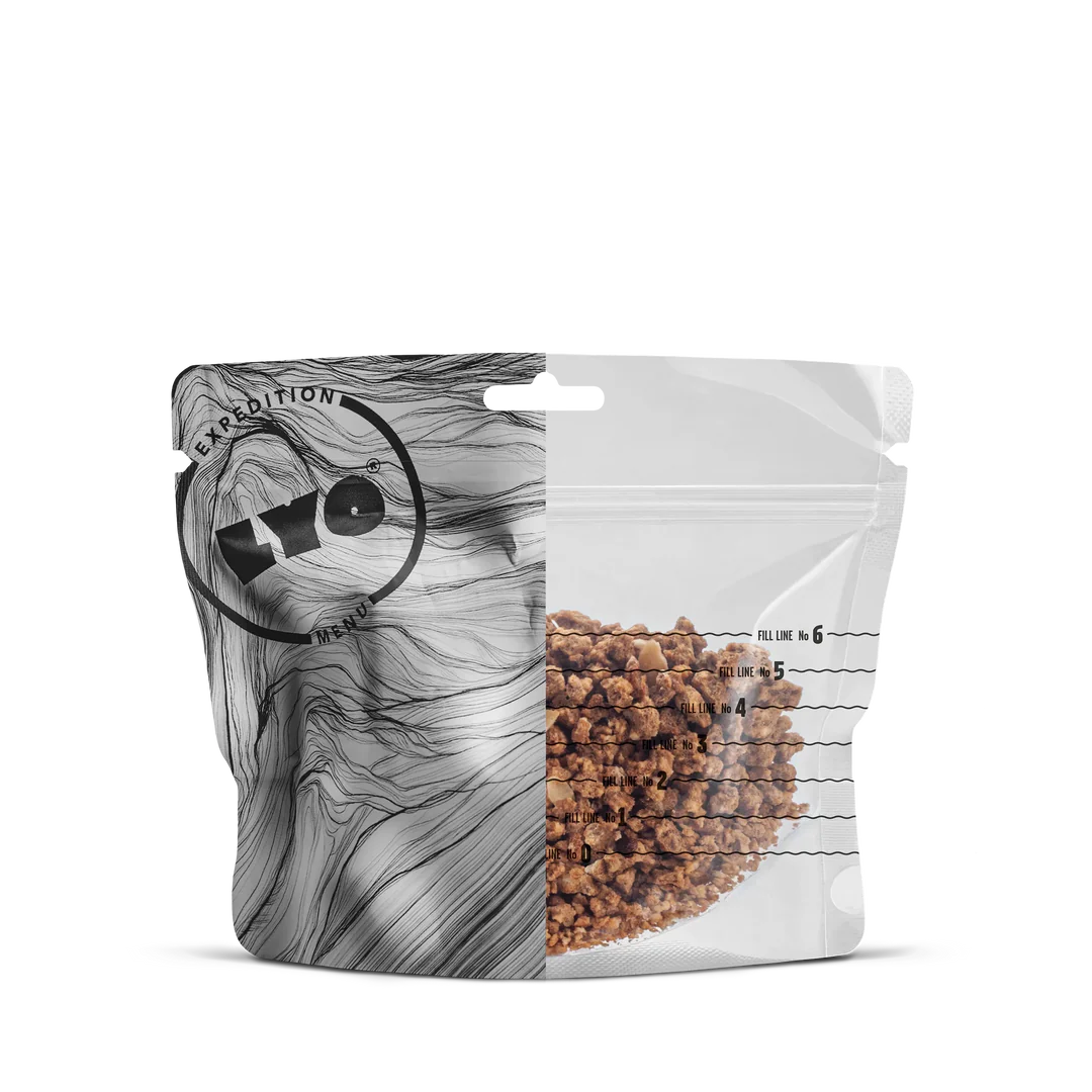 Die LYO EXPEDITION Verpackungen wurden entworfen um leicht zu sein und in der selben Zeit eine angenehme Zubereitung der LYO Mahlzeit zu genehmigen.