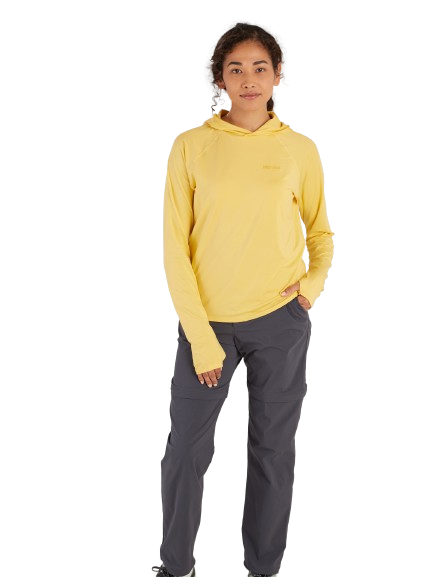 Sun hoody, meet our our best-selling Windridge shirt. Not only did we add a crossover hood to this moisture-wicking, sun-blocking summer favorite, we upgraded almost every fiber of its construction to make it better for you and the Earth. Lightweight REPREVE® fabric is made from 100% recycled water bottles with added stretch so going the extra mile is a no-brainer. UPF 50 sun protection and ultra-wicking DriClime® make this the perfect all-day summer layer for sunny beach, boat, and bouldering days. A 4-season workhorse, this hoody transforms to fit the season, from fall backpacking baselayer to standalone cold-weather running companion.