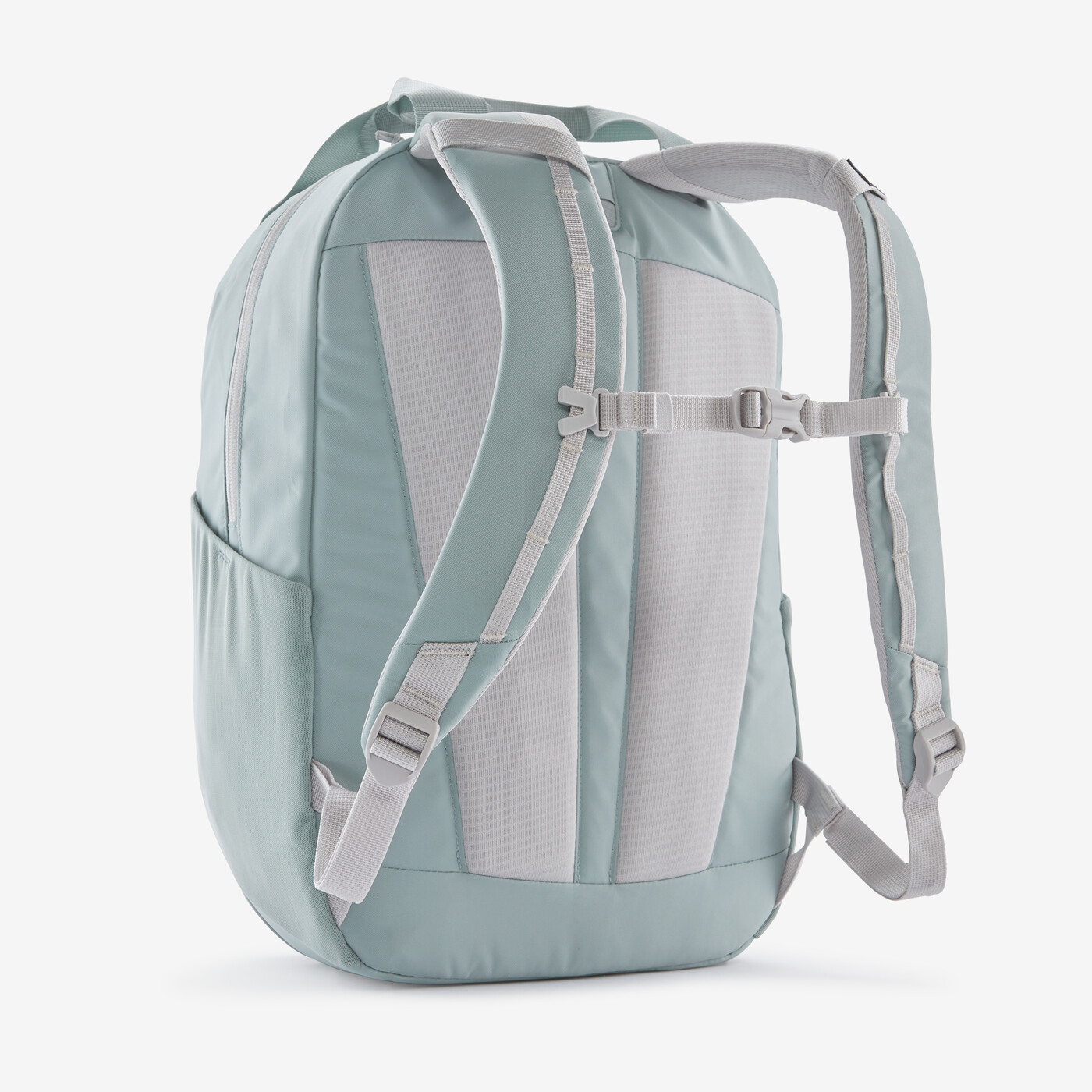 All fabrics, spacer mesh and static mesh are 100% recycled (stretch mesh is 72% recycled),and the body fabric has a durable water repellent (DWR) finish made without perfluorinated chemicals (PFCs/PFAS); pack volume is 20 liters