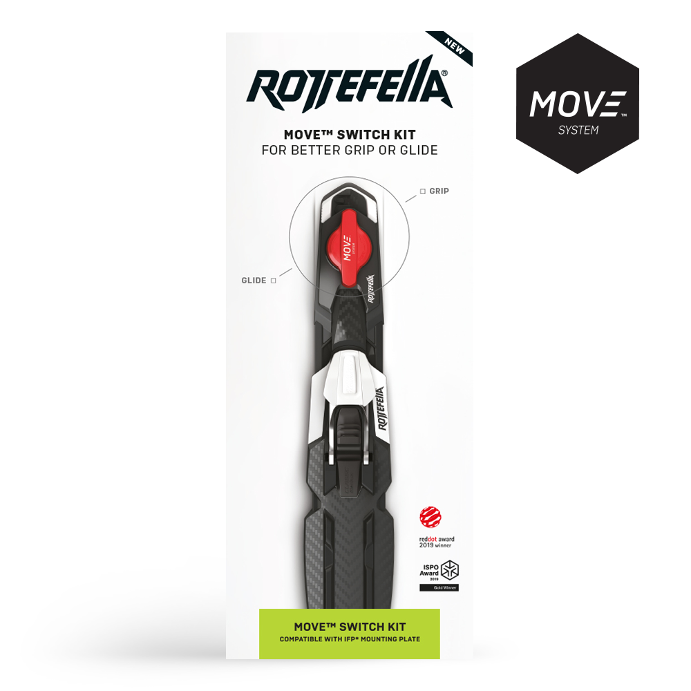 Rottefella Move Switch KIT provides you with better grip and glide by turning the MOVE switch. Move the bindings without taking off your skis - just switch! With a bit of practice, you can even do this at speed. Move the binding forward for increased grip and backward for better glide. Perfect for wax skis and perfect for skin skis. Rottefella MOVE™ Switch is approved by FIS and can be used in all competitions. Rottefella MOVE Switch Kit for IFP* fits all skis with IFP* mounting plate.
