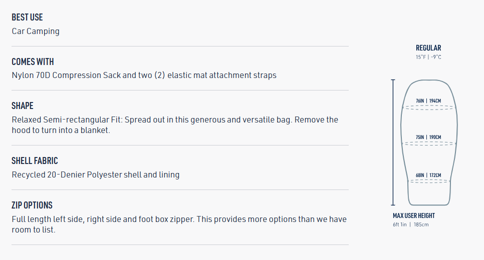 - - RDS-zertifizierte, 650+ fillpower Entendaunen mit einer Ultra-Dry Down Behandlung ohne PFC, um in feuchten Bedingungen trockener zu bleiben - Inklusive einer leichten 20D recycelten Nylonhülle mit einer DWR-Beschichtung ohne PFC, um vor Wind und Feuchtigkeit zu schützen, sowie einer 20D recycelten Nylon-Innenseite für mehr Komfort - Das Free-Flow+ Zip System sorgt für eine hervorragende Temperaturregulierung und mehrere Schlafsack-Konfigurationen - Übergroße Kapuze mit Verstellkordeln bietet Platz für dein Lieblingskissen von zu Hause