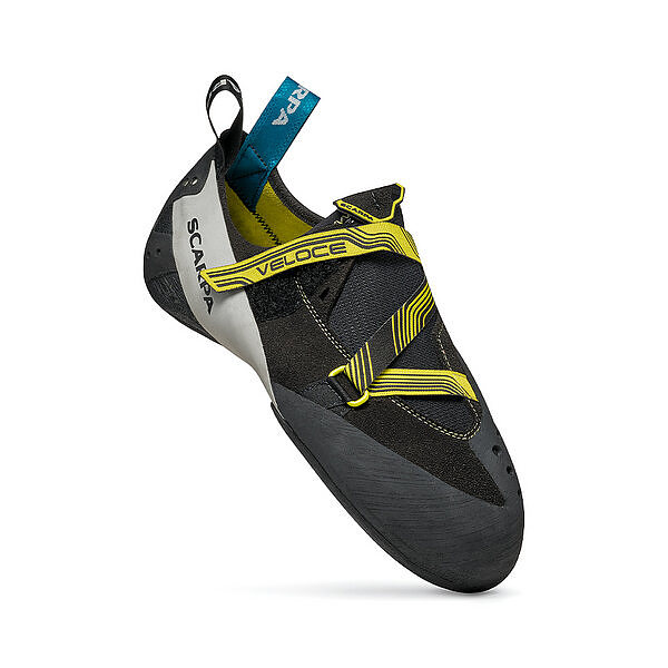 The SCARPA Veloce is an indoor-specific climbing shoe that offers enhanced comfort for prolonged gym sessions, with performance features geared toward grip, precision, and support.