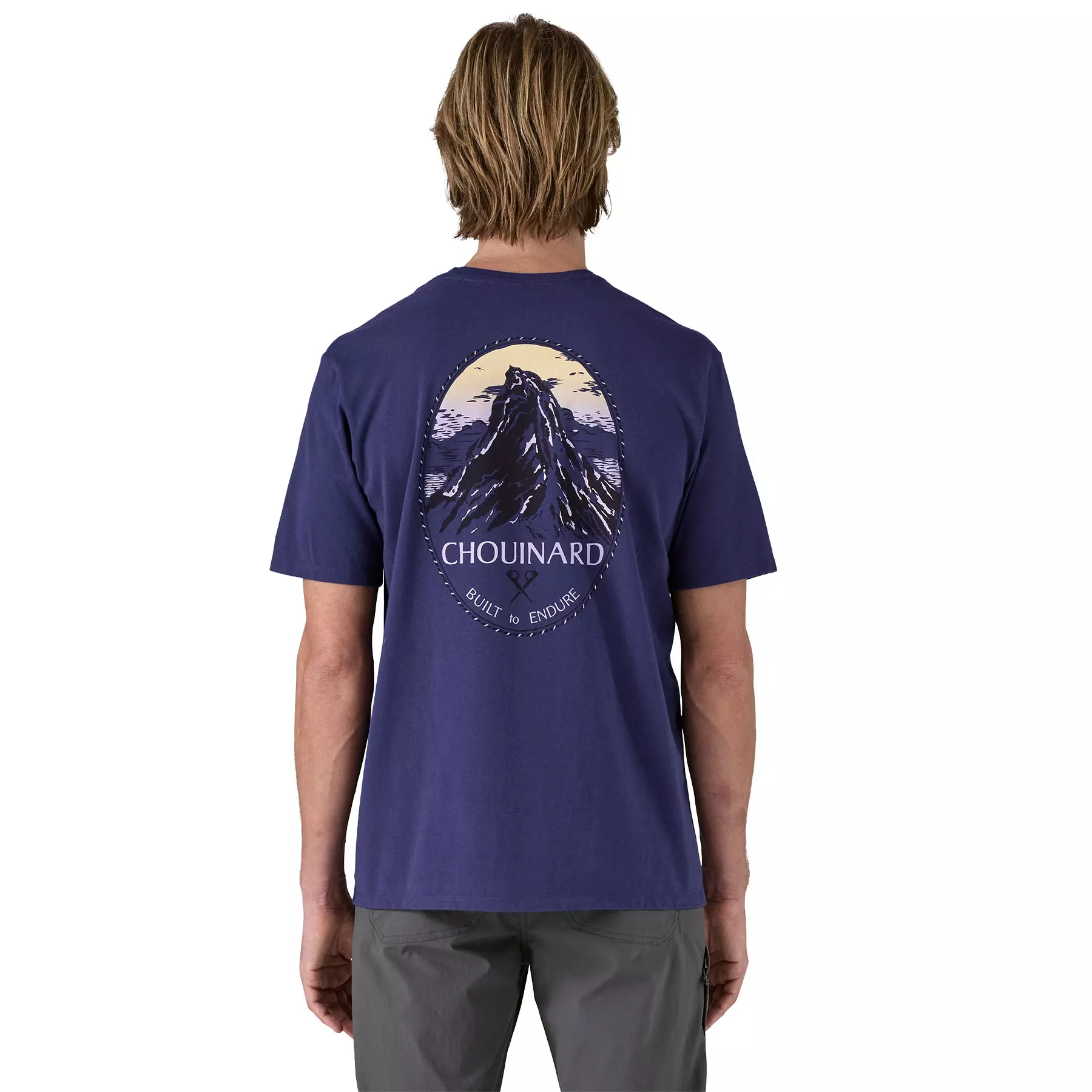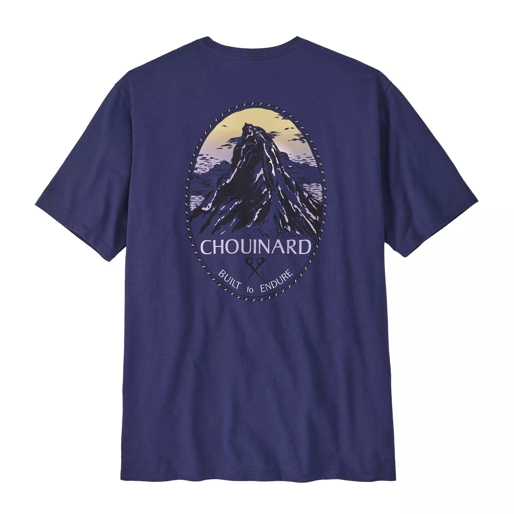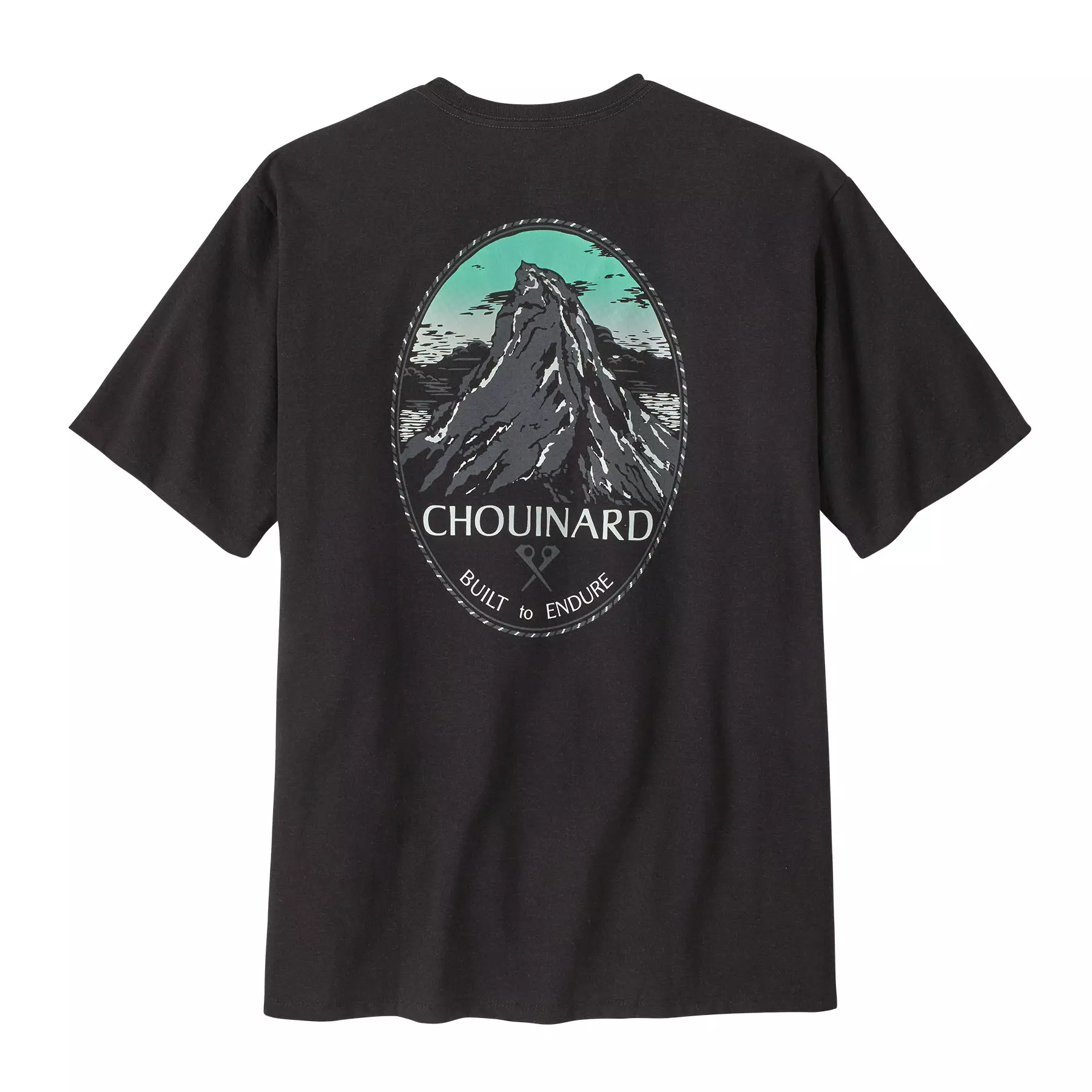 They added gradient-printed color to this classic graphic from the early days of Patagonia. Check it out on Chouinard Crest Pocket Responsibili-Tee® that's made with recycled fabrics.