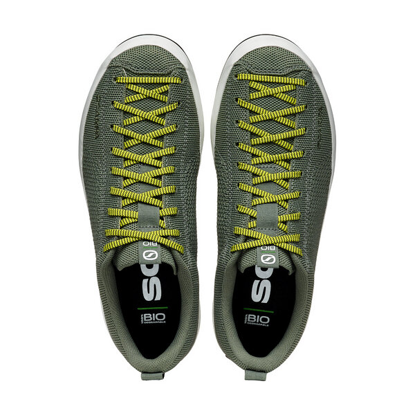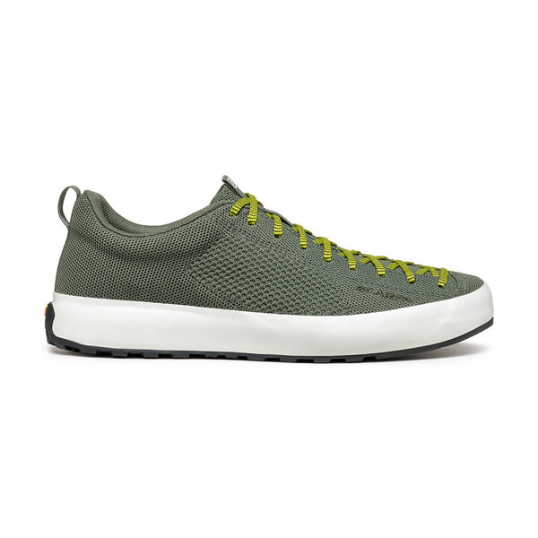 MOJITO WRAP BIO a green shoe par excellence by SCARPA with a hand-applied band. The sneaker has been designed and made with a sustainable approach both in terms of its simplified design, which reduces production waste, and in the choice of materials.