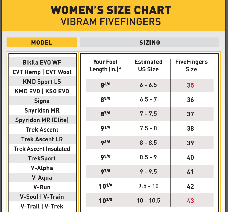 Кракът на всеки един от нас е уникален и различен. Точно това може да предизвика затруднения с избора на правилната Vibram FiveFingers обувка за вашето индивидуално и специфично ходило. Ето и крадко ръководство за оразмеряване, както при мъжете, така и при жените, което би ви помогнало да направите правилния избор.