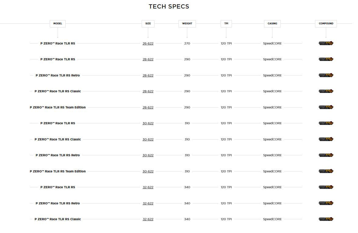 P ZERO™ Race TLR RS представлява най-новото допълнение към гамата от пътни състезателни гуми Pirelli P ZERO™ Race, произведени в Италия. Това постижение е възможно благодарение на новата смес SmartEVO², формулирана с ноу-хау и най-новите материали, използвани в моторните спортове, осигурявайки допълнително подобрение на сцеплението и управлението както на сухи, така и на мокри повърхности. Освен това e олекотена и патентована структурата SpeedCORE™, включваща тънък, херметичен слой от каучукова смес, обогатена с арамидни частици. Комбинацията от тези фактори направи възможно създаването на гума с висока производителност, която е дори по-бърза за конкурентите, но също и за тези, които искат да се възползват от същата технология като професионалистите.