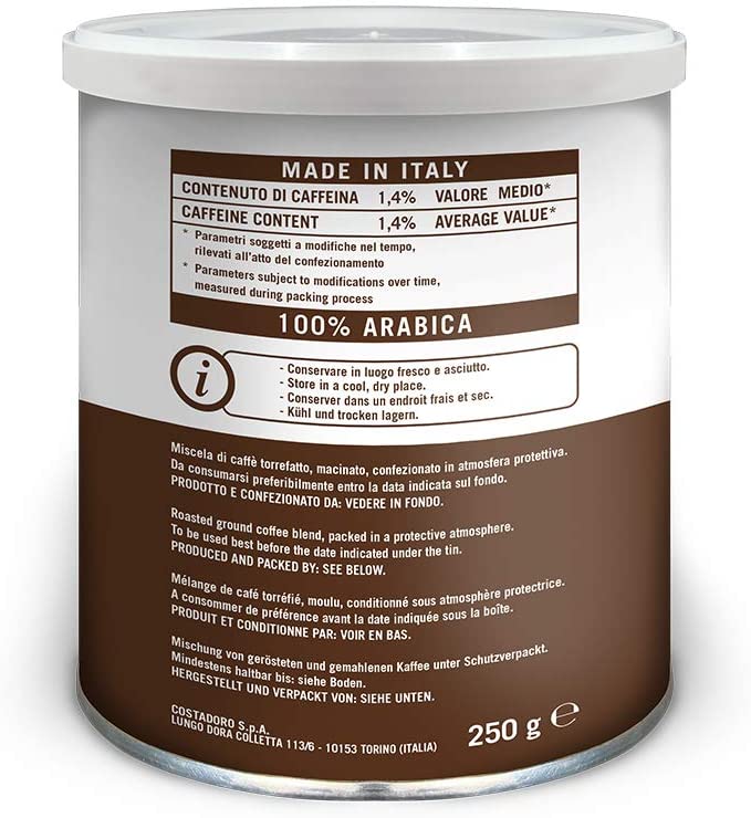 Начин на приготвяне: 5-7g Costadoro кафе за всеки 40-50 ml вода в кафеварката.