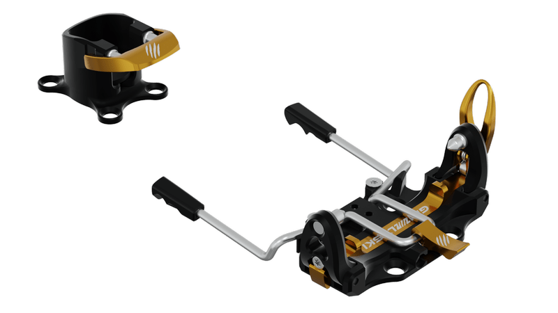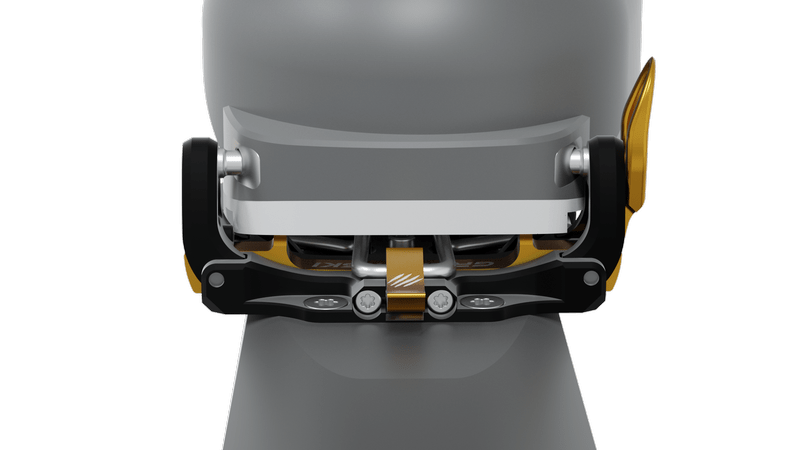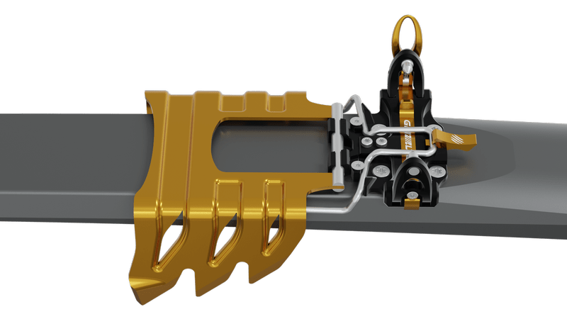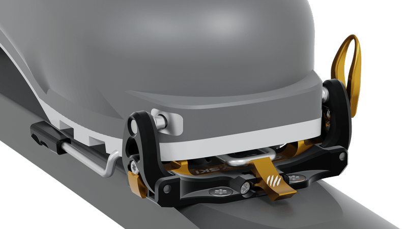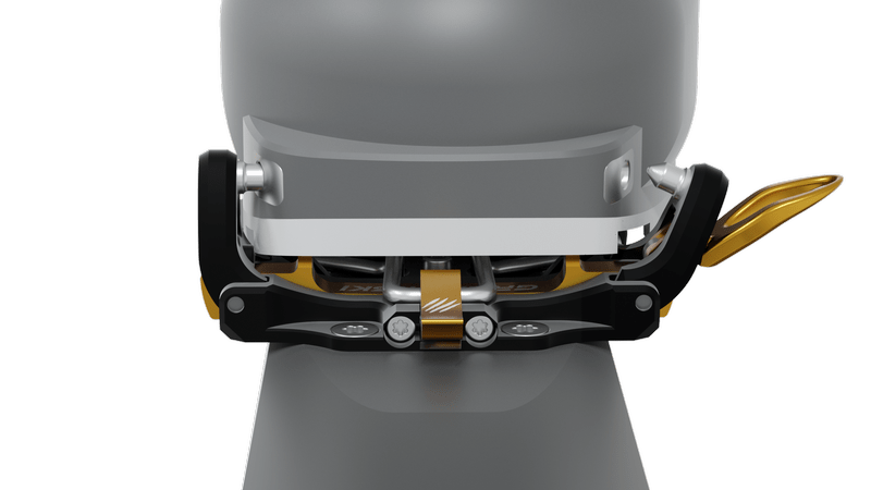 Новият механизъм на петата осигурява безопасно странично и вертикално освобождаване на ски обувката. В режим на изкачване е възможна регулация на позицията на крака.