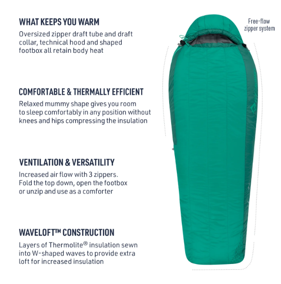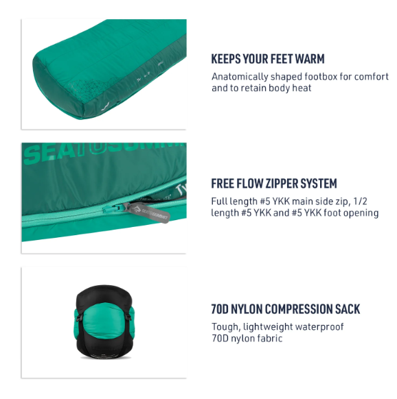 Sea to Summit Traverse TVII Regular Left Zip е лек и адаптивен трисезонен спален чувал със синтетична изолация, идеален за туристи и къмпингуващи, които ценят комфорта, гъвкавостта и надеждната топлина в разнообразни външни условия.